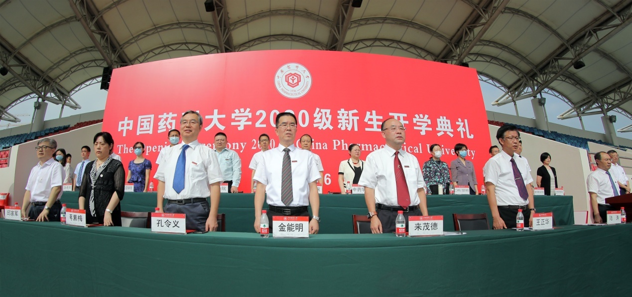 金秋送爽,喜迎八方學子;和煦陽光,開啟嶄新篇章。9月16日,我校2020級新生開學典禮在江寧校區隆重舉行。今年,學校嚴格按照疫情防控常態化的有關要求,將開學典禮設置在體育場舉行,來自全國各地的3000余名本專科生和2400余名研究生新同學排成整齊的方陣間隔而坐。校黨委書記金能明,校長來茂德,副校長陸濤,副校長孔令義,校黨委副書記、副校長王正華等校領導出席開學典禮并在主席臺前排就座,各院部、職能部門負責人、企業代表和教師代表也來到現場,與全體新生共同見證這一莊嚴時刻。開學典禮由陸濤副校長主持。典禮正式開始前,校室內樂團以演奏管弦樂暖場的方式對2020級新藥大人的到來表示歡迎。