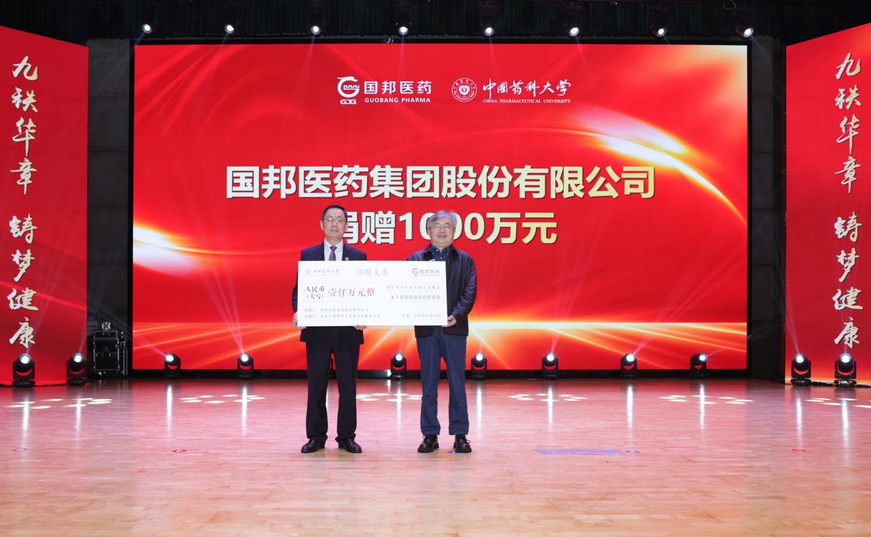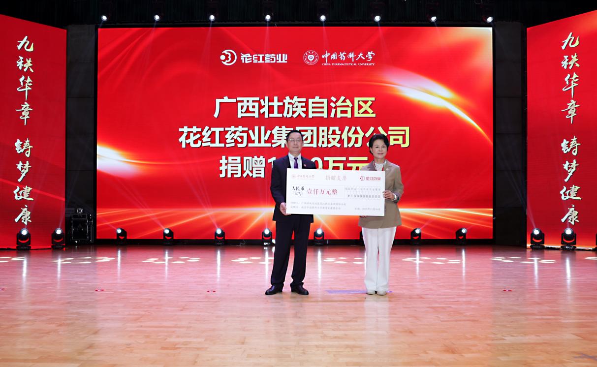 會上,還舉行了校友捐贈儀式。國邦醫(yī)藥集團董事長邱家軍校友、花紅藥業(yè)集團董事長韋飛燕校友分別向我校捐贈1000萬元。