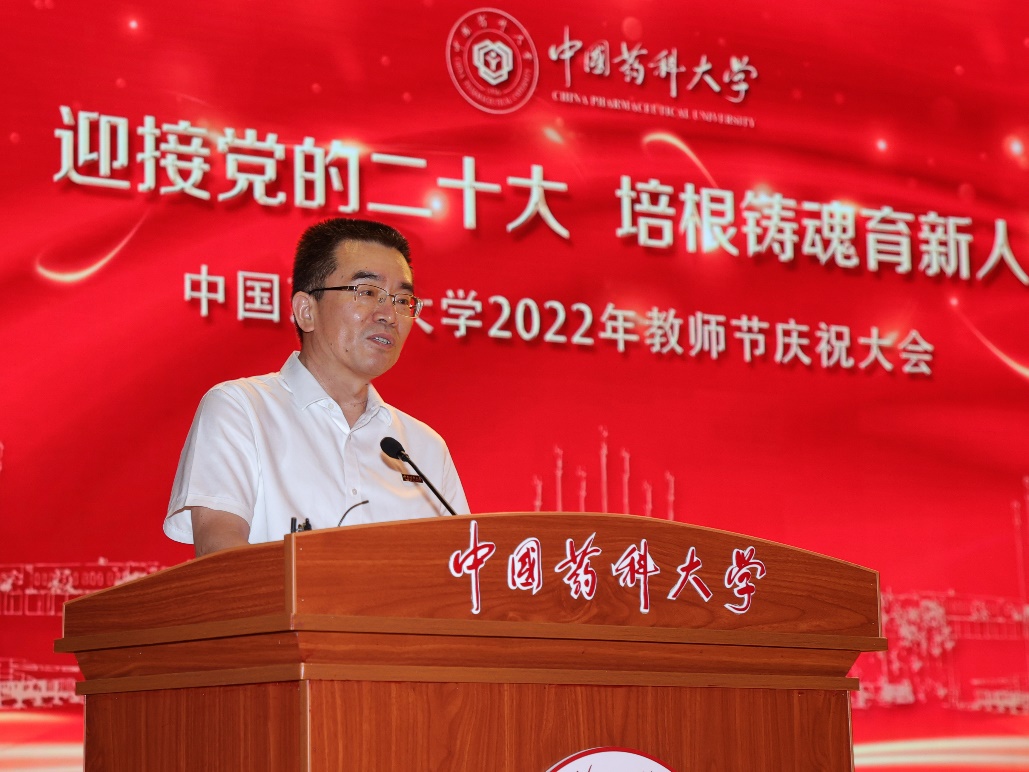 校黨委書記金能明代表學校向全體教職工致以節日的問候,并向受到表彰的同志表示熱烈的祝賀!他回望了過去的一年來學校在教書育人、科學研究、社會服務等方面取得的突出成績,回顧了學校圍繞教師隊伍建設、教師思想政治和師德師風建設、思政教育、人才引進、實驗室管理和醫保改革等方面開展的一系列舉措,充分肯定了全體教職員工為學校發展作出的貢獻。并向廣大教師提出三點希望,一是希望廣大教師要做心懷“國之大者”的大先生。要從黨和國家事業發展全局的高度,把立德樹人融入思想道德教育、文化知識教育、社會實踐教育各環節。要認真對待每一次備課、認真上好每一次課、帶好每一堂實驗課,培養學生成為堪當民族復興重任的時代新人;二是希望廣大教師要做改革發展創新的引領者。要傳弘揚老一輩的光榮傳統,自覺地將自身職業發展融入國家發展和學校事業發展大局中,積極探索、守正創新,用自己的真才實學為實現醫藥強國和服務健康中國做出新貢獻;三是希望廣大教師要做“經師”和“人師”的統一者。要從自身做起,在錘煉扎實學識上下功夫,在提升人格品質上下功夫,在堅定學生理想信念、厚植愛國主義情懷上下功夫,引導學生樹立正確的世界觀人生觀和價值觀, 努力成為德智體美勞全面發展的社會主義建設者和接班人。