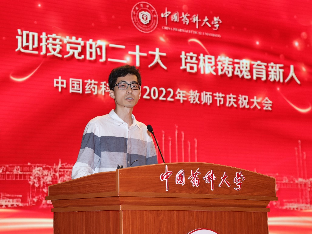 生命科學與技術學院曹榮月教授作為退休教職工代表發言,她飽含深情地回顧地回顧了從教38年來銘記“精業濟群”的校訓精神,鉆研教學方法、苦思因材施教、引領青年教師成長、守候學生未來的工作歷程。新入職教師代表藥學院李蘇昕特聘研究員在發言中回顧了在藥大求學和工作過程中老師們對自己的諄諄教導,表達了對母校辛勤培育的感恩之情。
