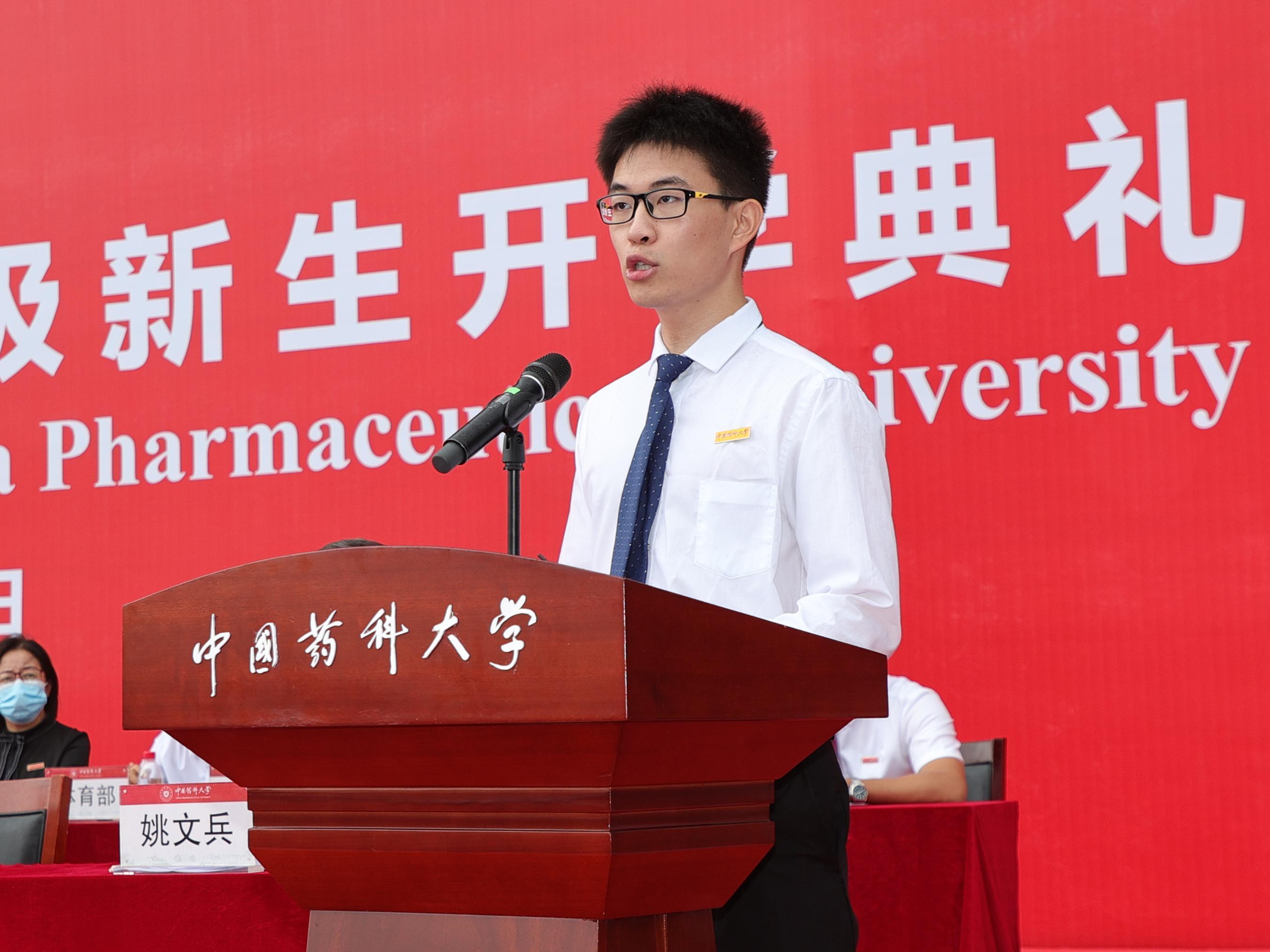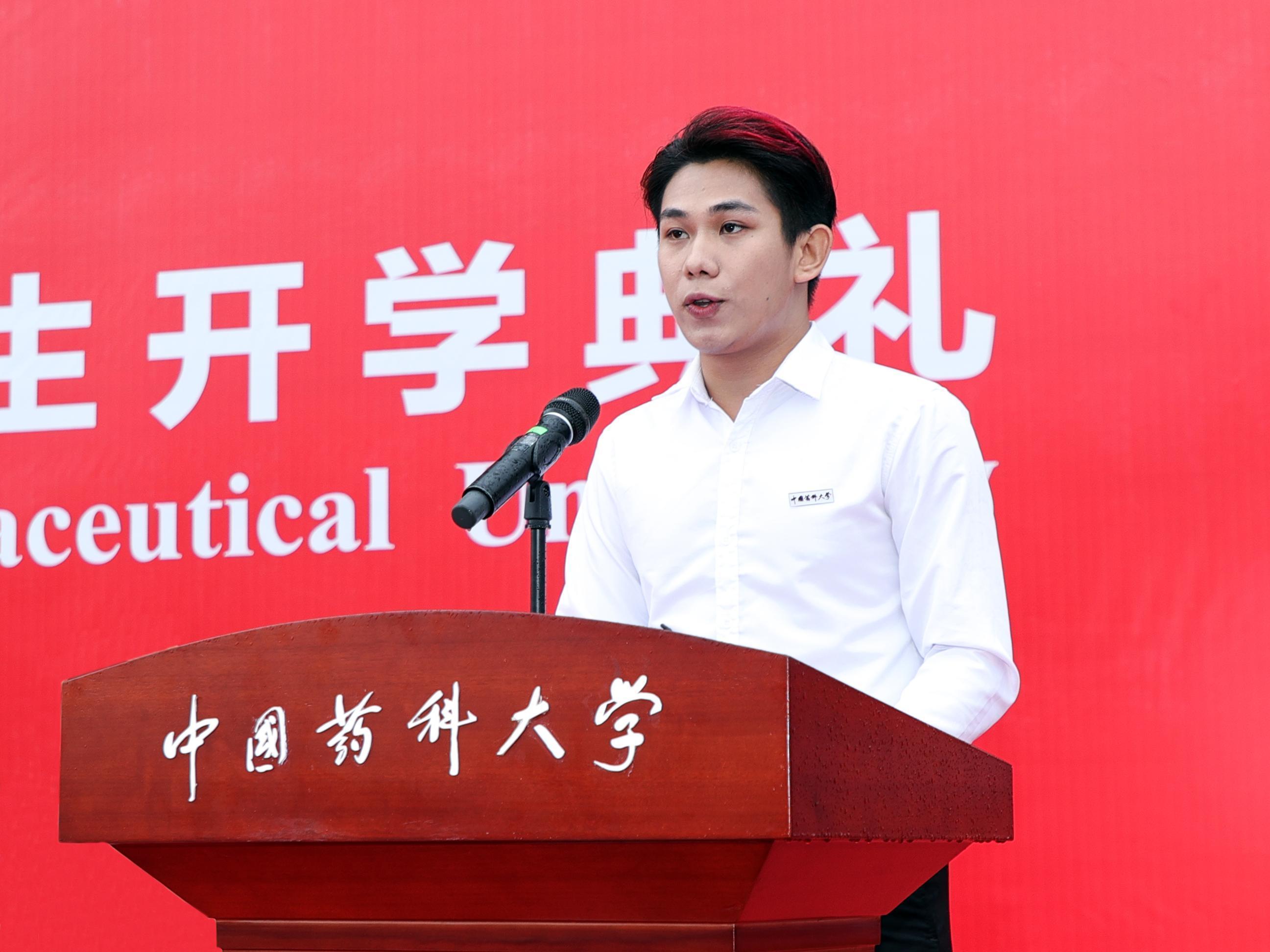 藥學(xué)院2022級本科生侯冠蘇,藥物科學(xué)研究院2022級研究生姚逾凡和來自柬埔寨的昌塞瑞,分別代表本科生、研究生和留學(xué)生新生發(fā)言。2022級本科生代表侯冠蘇以《以后浪之勢,助興藥之力》為題發(fā)言。她表示,“一入藥大門、一生藥大人”。作為藥學(xué)學(xué)子,她將以惠眾濟(jì)世為己任,傳承薪火,將一生熱愛奉獻(xiàn)給祖國醫(yī)藥事業(yè)。本科就讀我校的2022級研究生代表姚逾凡在發(fā)言中表示,藥大“學(xué)習(xí)氛圍好、生活環(huán)境好、老師同學(xué)好”是他選擇繼續(xù)在本校深造的原因。希望今后和同學(xué)們一道在藥學(xué)領(lǐng)域刻苦鉆研、興藥為民、榮校報國。留學(xué)生代表、來自柬埔寨的昌塞瑞在發(fā)言中表示,在疫情期間,中國政府和人民雪中送炭,為柬埔寨提供各種幫助;熱情善良的藥大人也為他個人帶來了無限溫暖。他希望在藥大學(xué)有所用,為自己的國家及兩國人民的友誼作出更多貢獻(xiàn)。