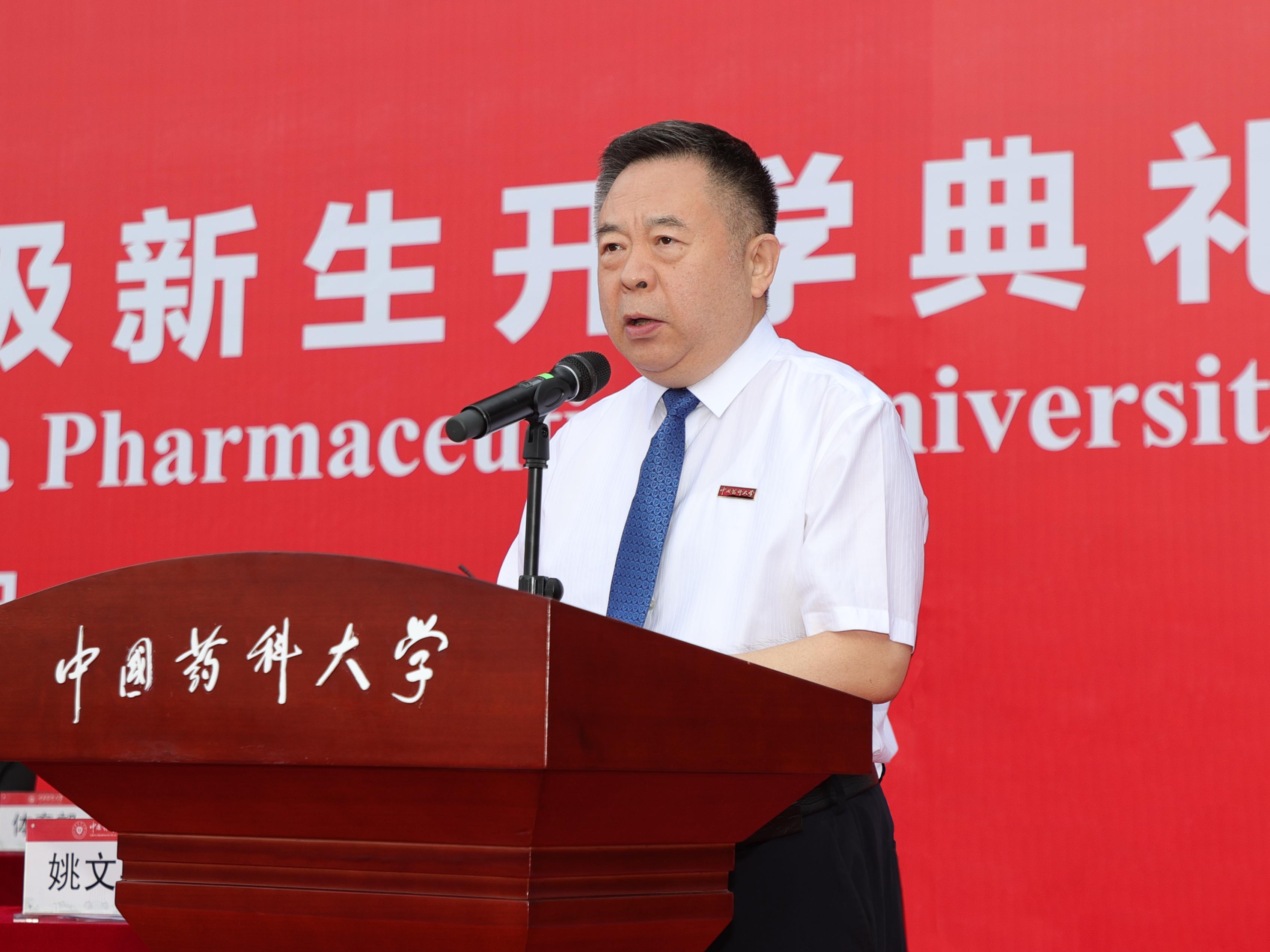 來茂德校長以《 中國藥學(xué)人的使命》為題發(fā)表講話。(后附講話原文)他從“藥是什么”“藥為什么能治病”“如何制得新藥”入題,指出現(xiàn)代藥學(xué)的出現(xiàn)深刻影響著人類社會。他強(qiáng)調(diào),習(xí)近平總書記高度重視中醫(yī)藥的發(fā)展,多次強(qiáng)調(diào)“守正創(chuàng)新”。就是希望將博大精深的東方哲學(xué)與理性思辨的西方科學(xué)融為一體,堅持中西并重,推動中醫(yī)藥和西醫(yī)藥相互補(bǔ)充、協(xié)調(diào)發(fā)展,進(jìn)而開創(chuàng)出一條全新的醫(yī)藥賽道。來校長指出,兼容并蓄、去偽存真、去粗取精,重新定義現(xiàn)代藥學(xué),最終建成醫(yī)藥強(qiáng)國,是當(dāng)代中國藥學(xué)人的使命。講話最后,來校長對新生們提出三點希望:一是在“強(qiáng)國有我”的誓言下?lián)姑R缲?fù)強(qiáng)國重任,在向著第二個百年奮斗目標(biāo)前進(jìn)的新征途中,勇于直面挑戰(zhàn),努力成為堪當(dāng)民族復(fù)興重任的時代新人;二是在“健康中國”的征途上立新功。要把握時代機(jī)遇,在服務(wù)國家發(fā)展建設(shè)的大局中實現(xiàn)人生價值;三是在“天道酬勤”的奮斗中求真知。要牢記榜樣的事跡,一步一個腳印在藥學(xué)領(lǐng)域深耕細(xì)作,讓青春的華章綻放出更加絢麗的光彩!