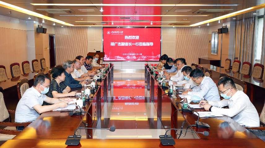 胡廣杰副省長高度肯定了我校在服務國家重大戰略和地方需求上所取得的成績,聽取學校事業改革發展中遇到的部分堵點、難點問題以及對我省生物醫藥產業建設工作的意見建議。胡廣杰副省長希望我校進一步聚焦“四個面向”,搶抓發展機遇,發揮科研優勢,加強高端技術研發平臺建設,加快成果應用與轉化,更好地為區域社會經濟發展服務,助推我省生物醫藥產業進一步強鏈、延鏈、補鏈。