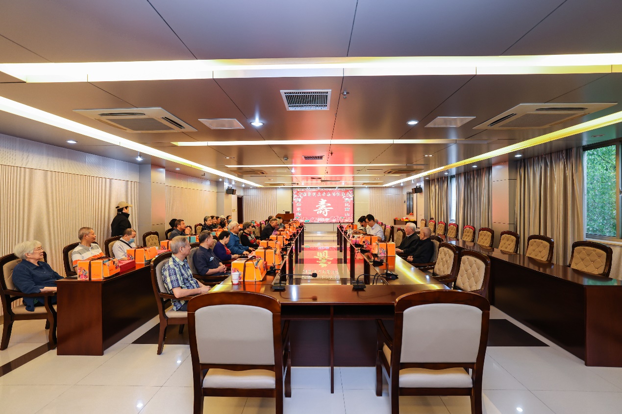 會后,全體壽星與到會領導、參會人員集體合影。對于不方便出行而未能到場的壽星,離退休工作處工作人員分組將蛋糕和綬帶送上門,致以生日和節日的祝福。