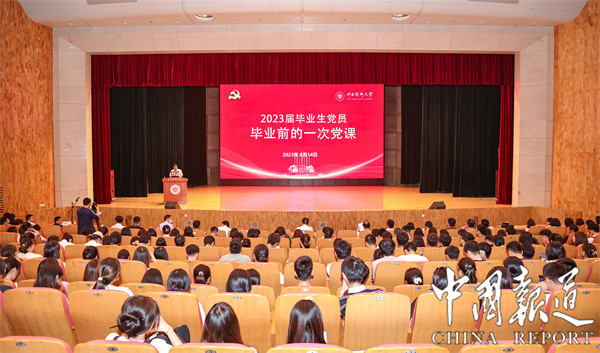 “習近平總書記一貫高度關心重視教育工作,特別是對大學生的成長念茲在茲,為大學生成長成才指明了前進方向,對高校堅守教育初心、培育時代新人提出了明確要求。廣大青年要肩負歷史使命,堅定前進信心,立大志、明大德、成大才、擔大任,努力成為堪當民族復興重任的時代新人,讓青春在為祖國、為民族、為人民、為人類的不懈奮斗中綻放絢麗之花。”6月14日下午,在2023屆畢業生即將揚帆啟航之時,中國藥科大學黨委在該校江寧校區大禮堂為全校畢業生黨員舉行畢業前的一次黨課。本次活動由校黨委副書記、副校長、黨校校長王正華主持。